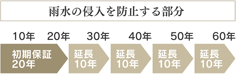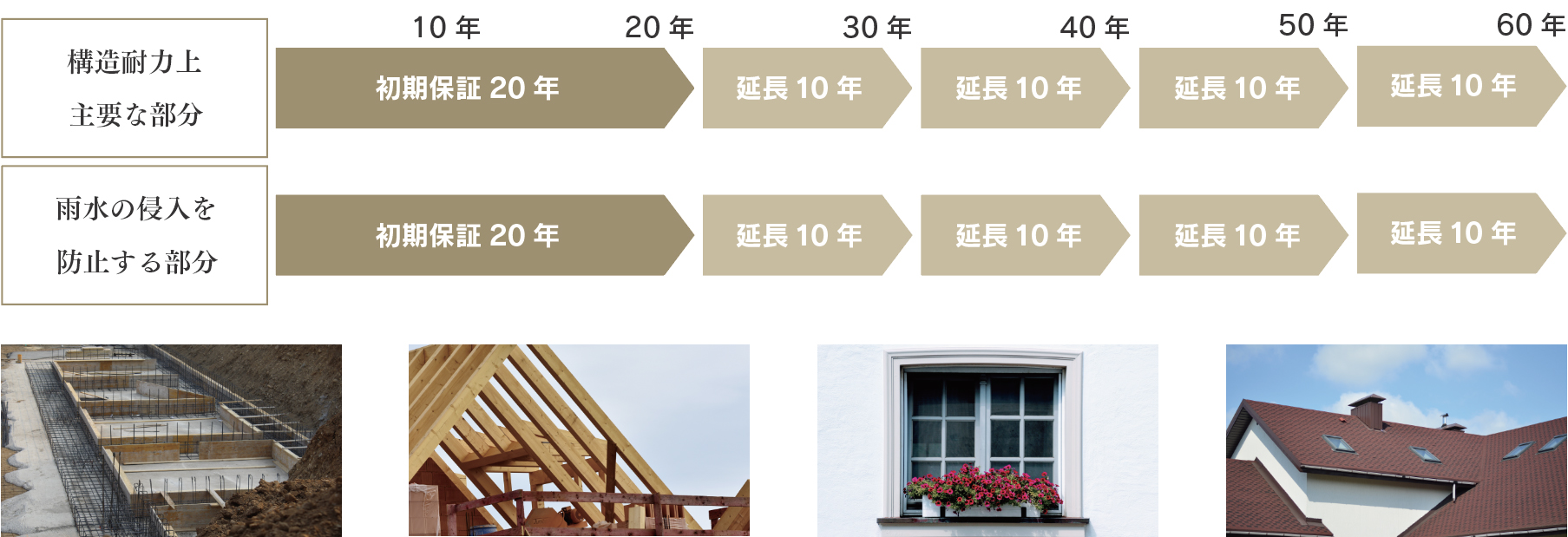 突然の高額な補修は、お客様の生活に大きな影響を与えます。私たちは施工品質に責任をもち、法律で定められた10年の責任期間を経過して構造や防水に不具合が起きたときでも、無償で補修させていただくことをお約束します。