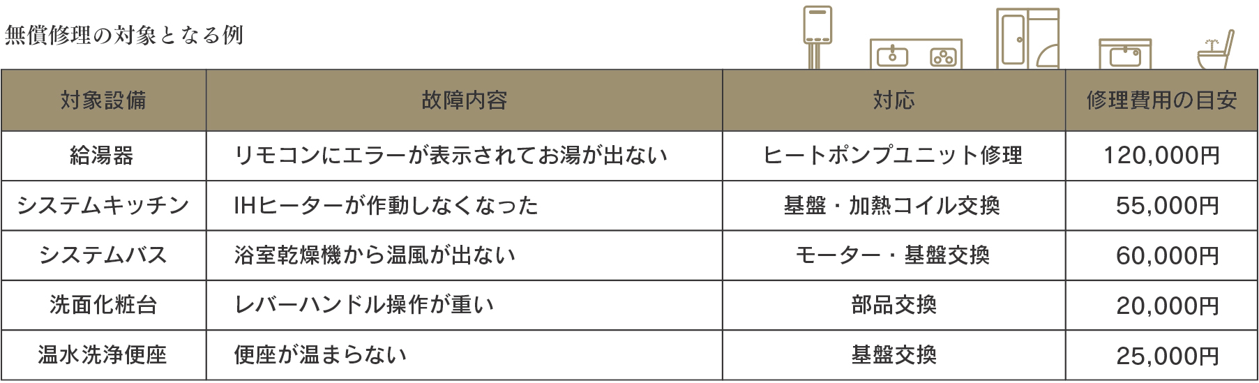 日々の生活に欠かせない住宅設備だからこそ、メーカー保証が終わっても10年までは何度でも自然故障を無償で修理いたします。24時間365日体制の専用コールセンターで修理を受付けし、お客様の万一に備えます。